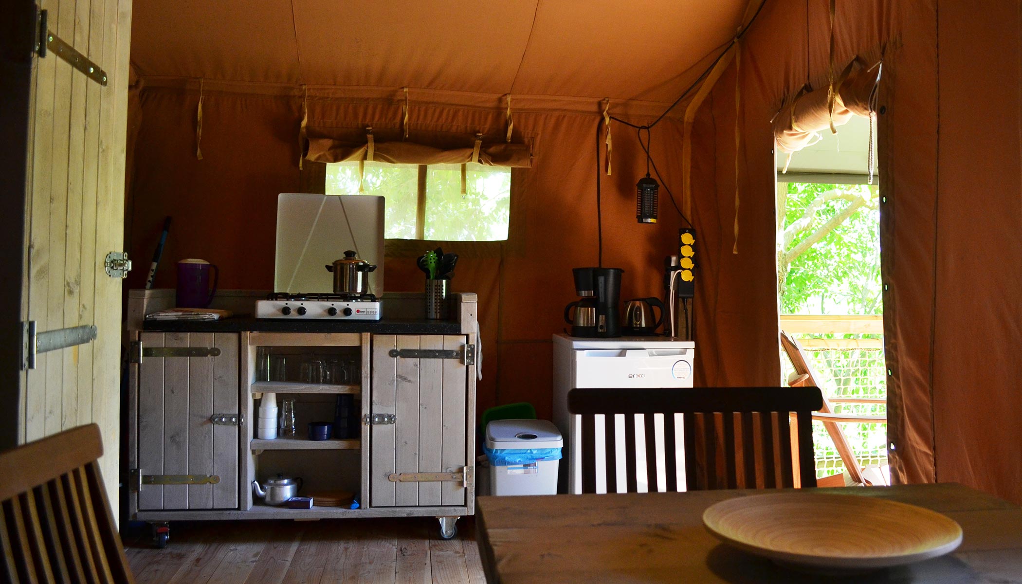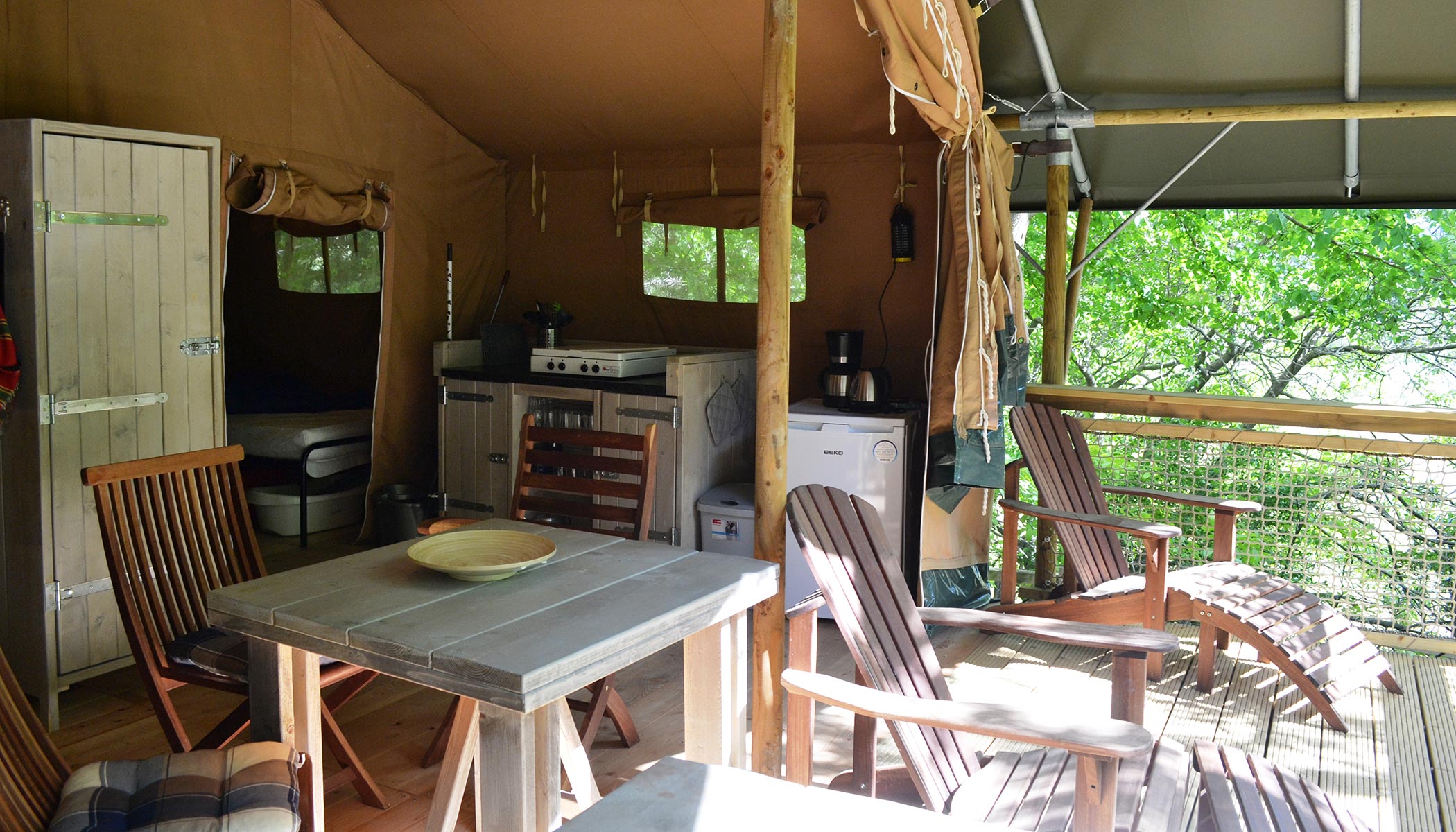 Una tenda amb molt de glamur, una experiència diferent. Gaudeix d'aquest allotjament que s'acosta més a un bungalou que a una tenda.